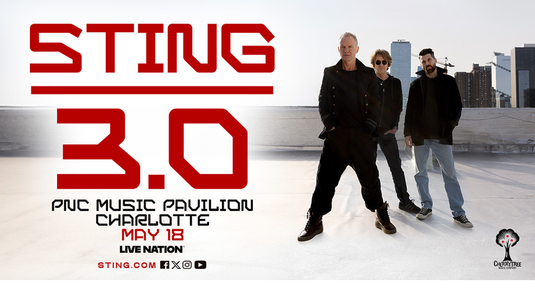 JUST ANNOUNCED! 🎶 STING is coming to PNC Music Pavilion Charlotte on 5/18/26 for the STING 3.0 Tour!