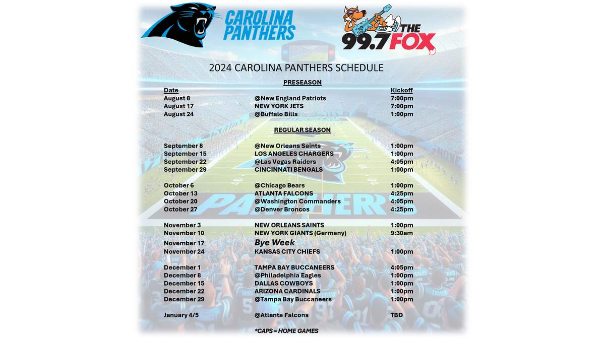 The 2024 schedule for the Carolina Panthers has been formally unveiled. In Coach Dave Canales' inaugural season as head coach, the team will embark on a transatlantic journey, venture out to the Western regions, and face off against the reigning champions.
