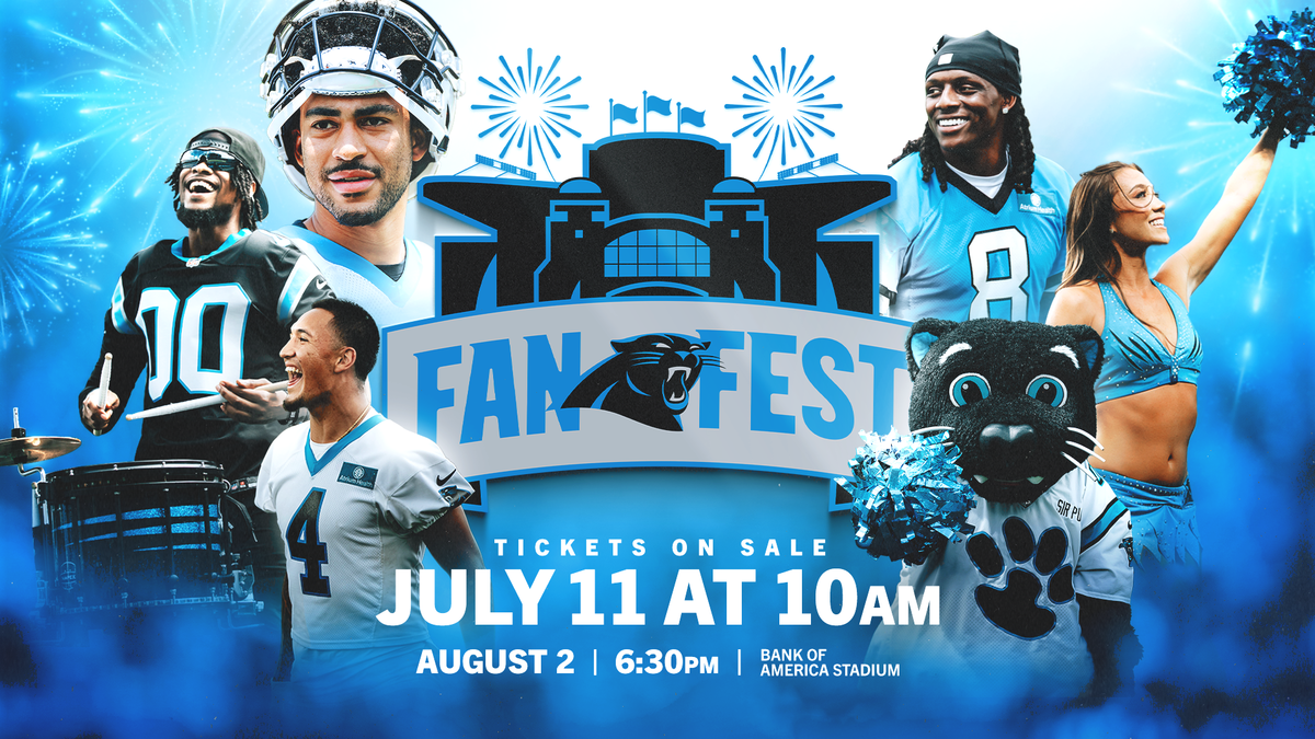 The Carolina Panthers have announced that this year's Fan Fest will be held at Bank of America Stadium in Charlotte, N.C. on Saturday, Aug. 2, at 6:30 p.m. In addition to the open team practice, the evening will feature performances by the Panthers entertainment teams as well as a fireworks finale and laser show. Gates will open at 5:00 p.m. for fans and practice will begin at approximately 6:30 p.m. Panthers and Charlotte FC PSL Owners will have access to pre-sale tickets tomorrow, July 10 at 10 a.m. Tickets for the general public will be available for purchase through Ticketmaster on Friday, July 11 at 10 a.m. All tickets are $5, and ticket proceeds will benefit Carolina Panthers Charities and its ongoing mission to serve communities across the Carolinas.